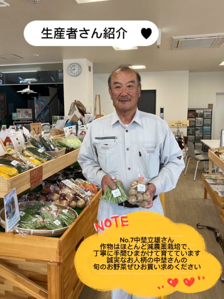 中埜立雄さん 2025年12月17日2025年12月17日新着情報 第7弾は… 中埜立雄さん 出来る限り農薬を使わない栽培をしています。 太陽の光いっぱい 誠実なお人柄の中埜立雄さんの旬の野菜たちは 今日も並んでます!! 温かい人柄と一生懸命に作られたお野菜をぜひお買い求めくださいね。 お待ちしております。